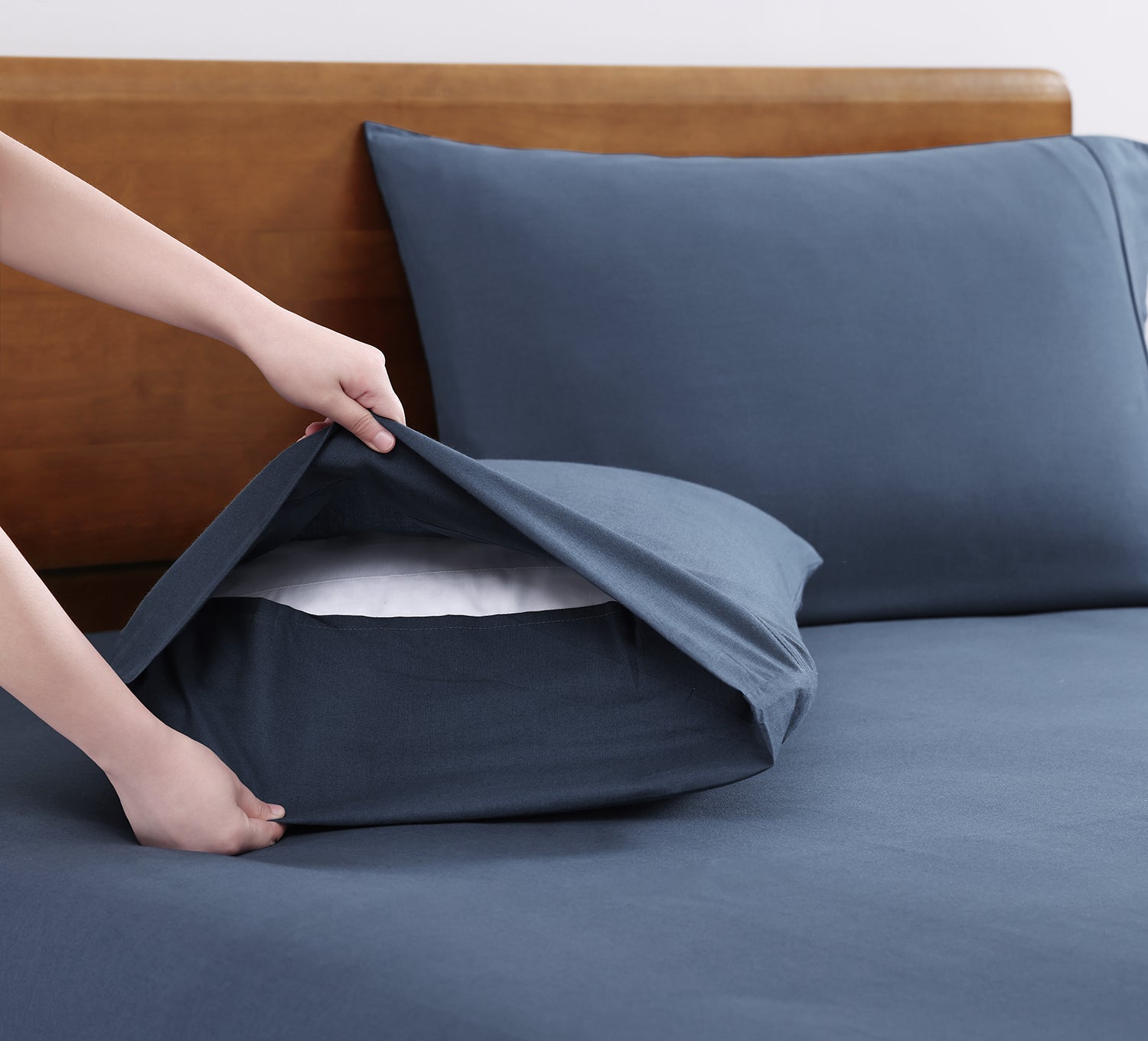 100% Organic Washed Cotton Sheet Set - Navy