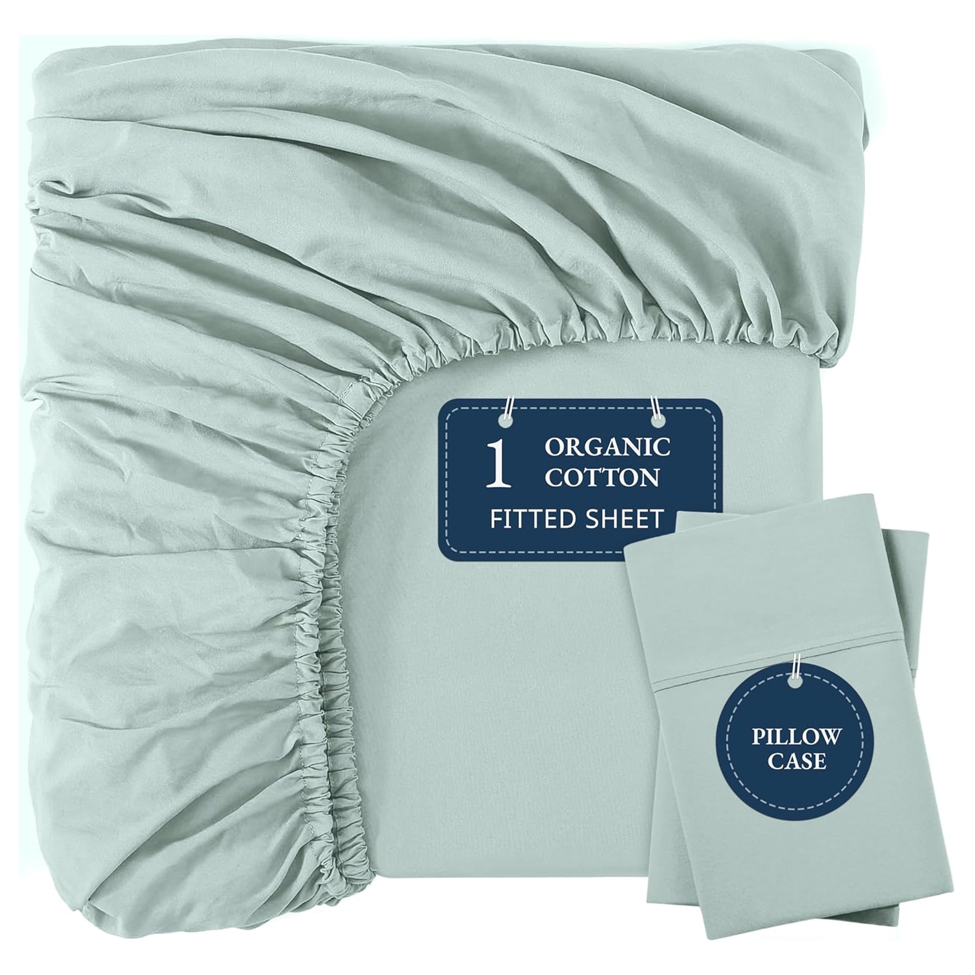 100% Organic Washed Cotton Fitted Sheet Set - Cool Blue