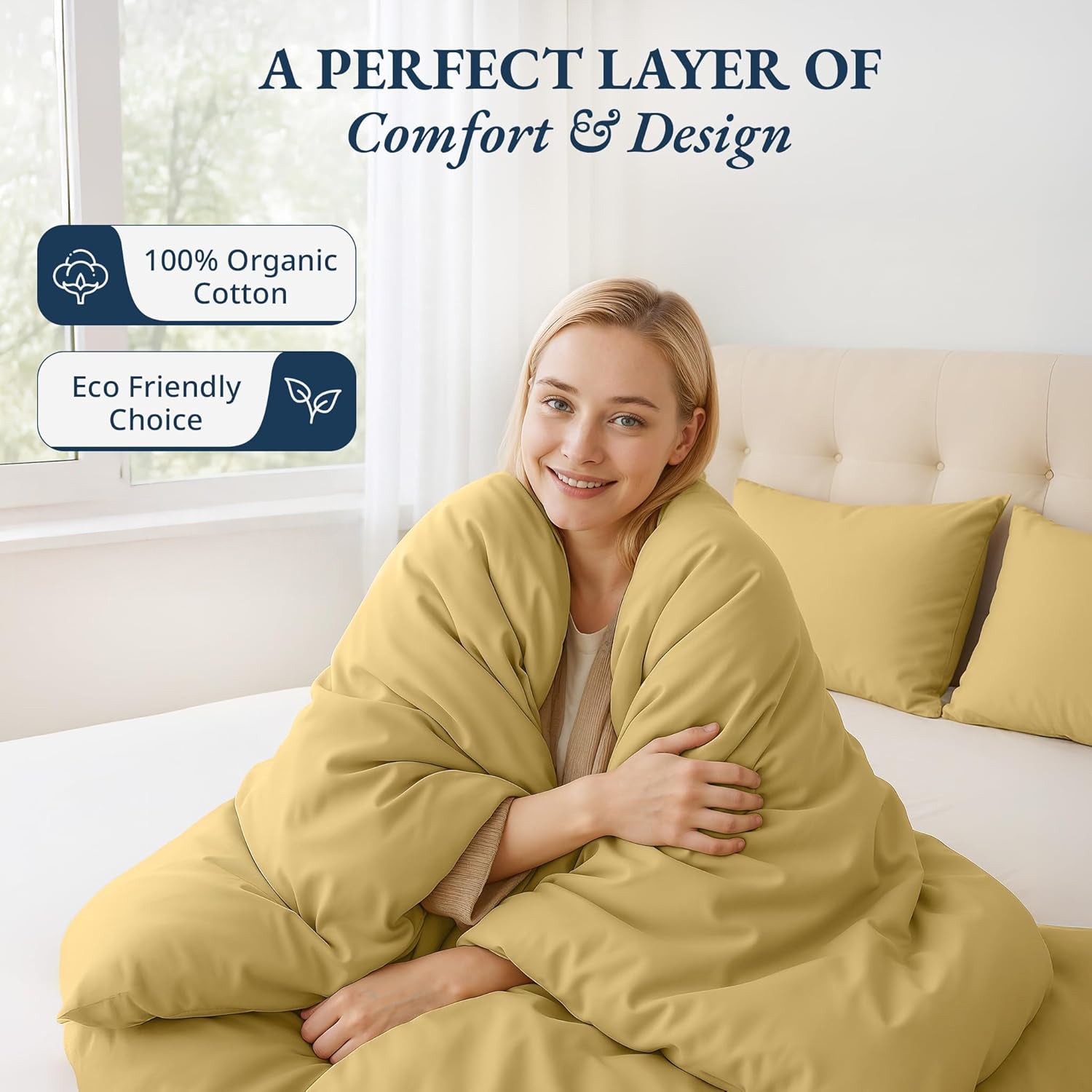 100% organic cotton, 180TC, washed for softness and easy care.